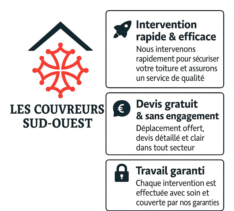 Les Couvreurs Sud-Ouest sont à votre écoute et prêts à intervenir rapidement dans tout le secteur de Montauban et jusqu’à 80 km alentour.